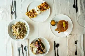 On a balmy January day, the chalkboard reflected a traditional seasonal offering: a take on new year’s black-eyed peas, the Hoppin’ John, featuring smoked sausage from Boarri Craft. “What I like about getting stuff locally is that it has a shorter time to sit around – it’s less time to get to the table. It still has those nutrients. It’s still beautiful. And it’s sustainable,” Szczepanek said. Scribbled next to the menu, a list highlighted all the vendors and ingredients sourced by Szczepanek, including eggs from Edelen Farms, panela from Knolle Dairy Farms, and lion’s mane and pink oyster mushrooms from Mario’s Mushroom Farm.